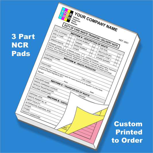 Duty of Care Waste Transfer Note NCR Pads Custom Printing