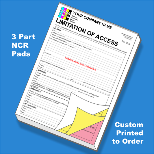 Electrical Permit to Work Confined Spaces NCR Pads – Custom Printed