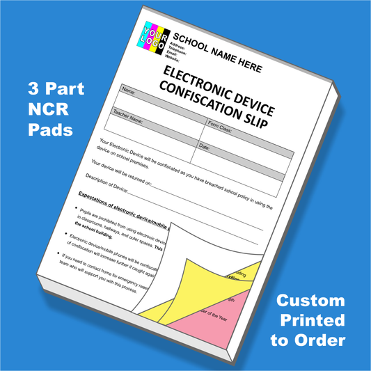 School Electronic Device Confiscation NCR Pads Custom Printing